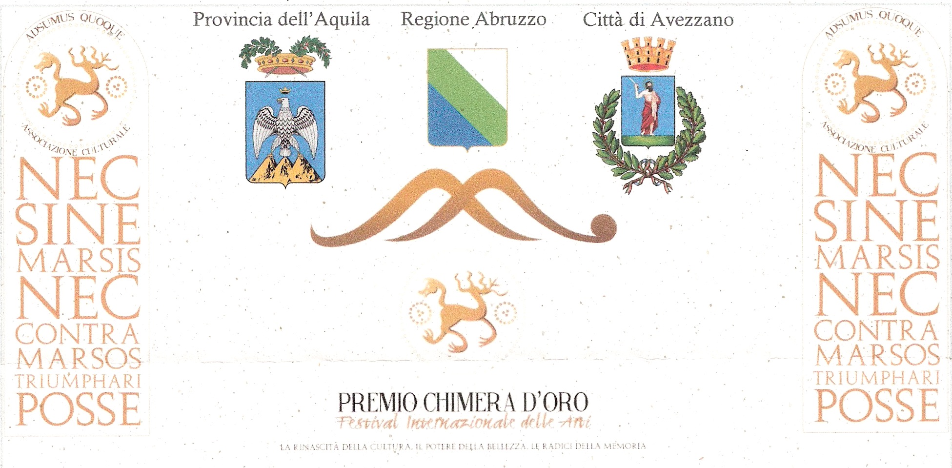 The mayor of the city of Avezzano, Dr. Giovanni Di Pangrazio and the Artistic Commission of the International Award « Chimera d’Oro », upon indication of the artistic director, Germano Di Mattia, represented by Dr. Antonio Di Legge, President of the Cultural Association, « Adsumus Quoque », proposed Hernán Huarache Mamani as the winner of the award, for his higly recognized merits in the field of culture.